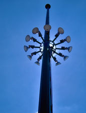 Consiste en un poste de acero galvanizado de gran altura y armado por secciones, que incorpora un mecanismo motorizado a nivel del piso con el propósito de maniobrar el acenso y descenso de una corona móvil, donde descansa el sistema de iluminación